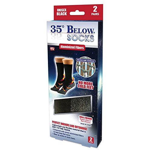 Binding : Apparel Product Description Now you can lounge around the house or get active outdoors while keeping your feet warm and dry with these 35 Below Ultimate Comfort Socks! Made with premium aluminized threads that are woven into a breathable, supersoft knit fabric. Conductive fabric technology utilizes body heat efficiently and minimizes sweat and moisture so that your feet stay warm, dry and cozy no matter the conditions. These are the perfect multifunctional socks-the stretchy nylon fabric makes them a great fit for outdoor enthusiasts and both men and women alike. Whether you're out skiing, hiking, or lounging on your couch on a cold winter day these cool socks will keep your feet warm and cozy! Never worry about uncomfortable damp socks again and stay dry with these 35 Below Ultimate Comfort Socks! 0
