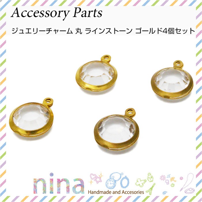 ■商品名:ジュエリーチャーム 丸 ラインストーン ゴールド 4個セット