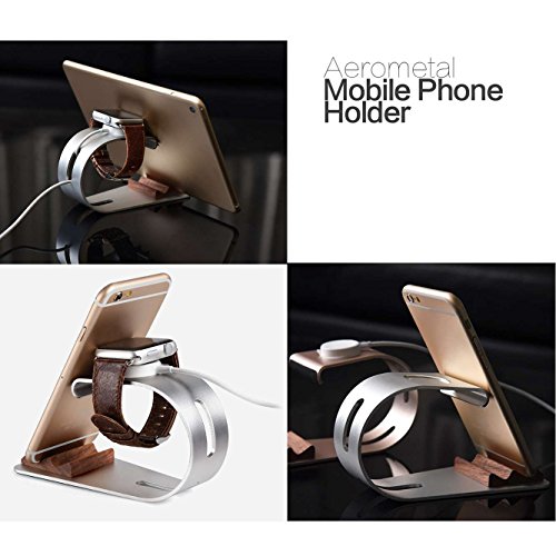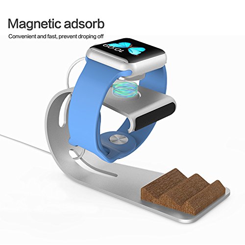 Yaletu iPhone/iWatch Charger Stand, 2 in 1 Aluminum Alloy Universal Phone Magnetic Charging Stand Station Desk Cradle Holder for iPhone 7/6s/6/5s & 38mm/42mm Apple Watch, Silver