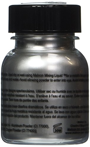 -. Binding : Health and Beauty -. Brand : Mehron -. Color : Silver -. Feature : Each 05 ounces (14 gm) container of Mehron Metallic Silver Metallic Powder will apply about 100 eyeliners up to 1/2 a body / Powered metals, Mehron Metallic Powders are ultra fine and the effects are startling / Can be used alone or with Mehron Mixing Liquid (not included) to make liquid metallic makeup / Use as an accent to face and body designs -. IsAdultProduct : 0 -. Label : Mehron -. Manufacturer : Mehron -. MPN : 129-S -. PackageQuantity : 1 -. PartNumber : 129-S -. ProductGroup : Health and Beauty -. ProductTypeName : HEALTH_PERSONAL_CARE -. Publisher : Mehron -. Size : Medium -. Studio : Mehron -. Title : Mehron Glitter Powders - Metallic Silver (0.5 oz/14 gm)