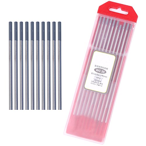 DAHAN 10 Pieces Grey Cerium Tungsten Electrodes 2% Ceriated (WC20) Welding Rod for TIG Welding Diam: 1/16”(1.6mm)