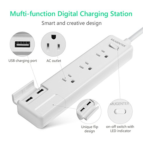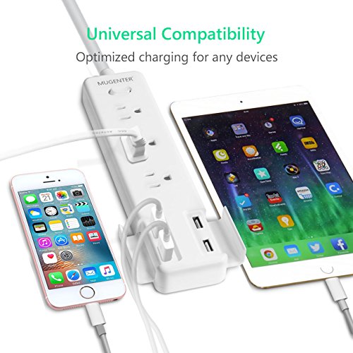 Smart USB Charger. Equipped with 4 USB charging ports, Mugenter power strip with USB ports automatically detects and delivers the fastest charging speed into 2.4A per port for any connected device, 4.2A in total.