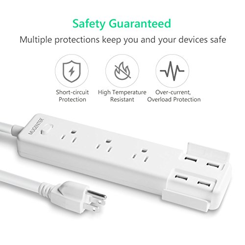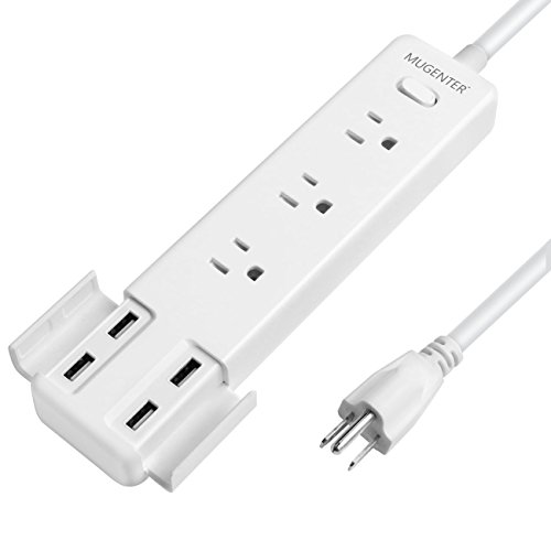 Heavy Duty 3 Outlets 4 USB Ports Power Strip Mugenter 110-240V Power Strip with USB Ports & 5ft Cord for Home and Office, White