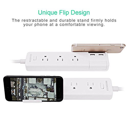 Creative Lid Design. Mugenter power strip with 4 usb ports was designed with protective lid to prevent dust and other foreign matter insertion, also can be used as phone holder.