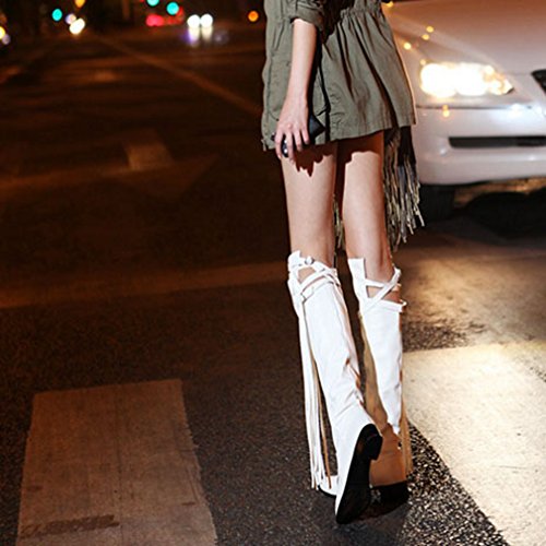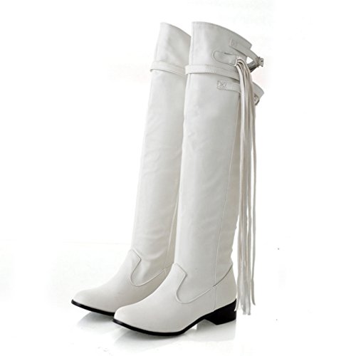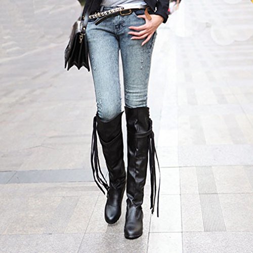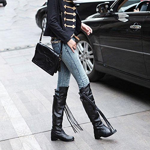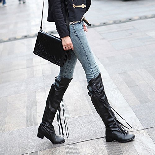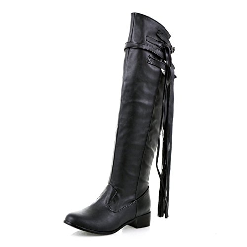 (Btrada)/Women's/Boots/DIRECT FROM USA/Btrada Women's Over The Knee Thigh High Boots Tendy Wide Calf Block Heel Tassel Belt Buckle Rid...