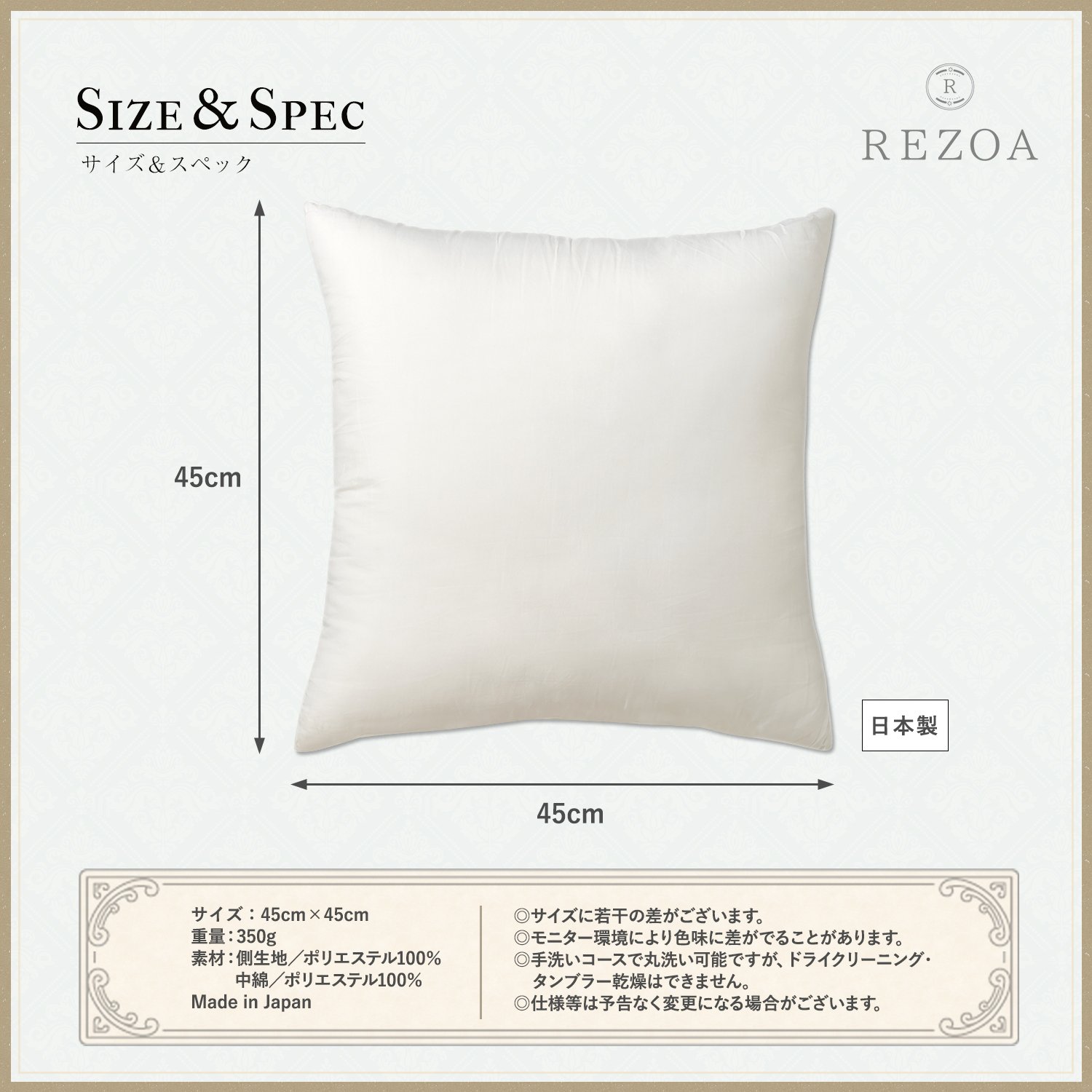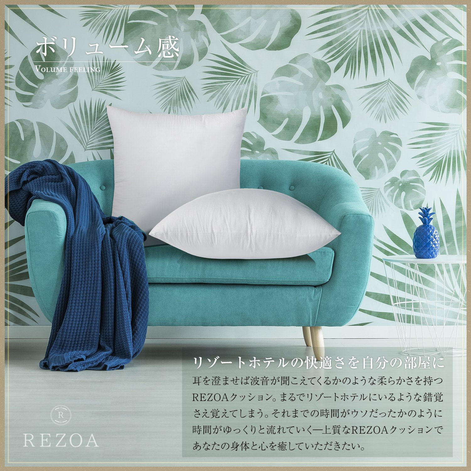 【リラックス空間を演出】ふわふわのクッションがいくつかあるだけでお部屋がリラックスムードになります。お客様をお迎えするときは、清潔なヌードクッションにお気に入りのクッションカバーをかけましょう。お客様にとって居心地のいい空間をつくることができます。REZOAは洗濯機で洗えていつも清潔を保てる、定番サイズ(45×45)のクッション中材です。