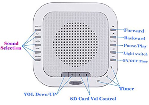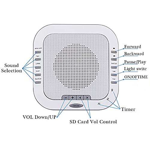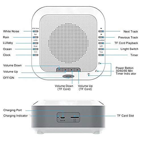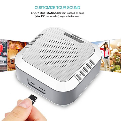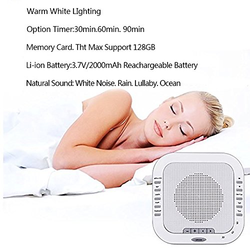 [Specification] 1) Natural Sound: White Noise, Rain, Lullaby, Ocean, Heartbeat 2) Memory Card, the Max support 128GB 3) 18650Li-ion Battery: 3.7V/2000mAh Rechargeable Battery 4) Adapter: Input AC 100-240V, 50/60HZ; Output DC 5V 1A 5) Charging time: 5 hours [5 Soothing Sounds] Select from white noise rain lullaby ocean heartbeat, The Lei Dangpeng Sleep Sound Machine sounds are engineered to mimic the natural environment to provide the most relaxing experience possible. [Integrated Premium Speakers with Adjustable Volume Control] Allows you to select the volume that's right for your room and comfort level [Optional Automatic Shut-Off Timer] Conserve energy while you sleep with an optional 30, 60, and 90-minute automatic shut-off timer [Great for Travel] The H.Guard Sleep Sound Machine is small and lightweight. It easily fits into a bag or suitcase making it the perfect travel companion. [Help you sleep] The H.Guard White Noise Machine allows you to get a restful sleep through the whole night by blocking out unwanted background noises; great for adults, children and babies who have sleeping problems. [Packaging Included] ?1 x Sleep Sound Machine ?1 x USB charging cable and adapter 0