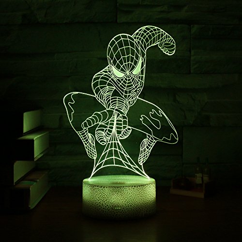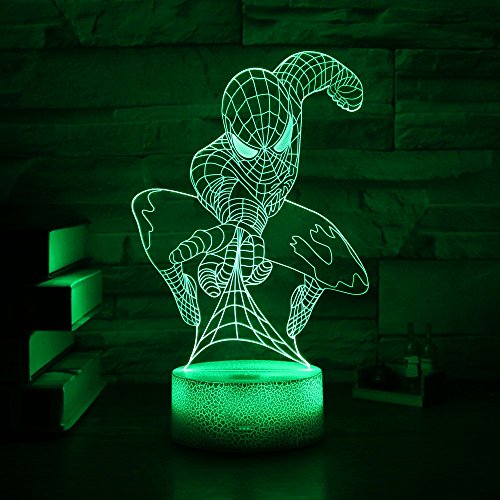 Gift Ideas Spiderman Night Lights 3D Illusion Lamp Led Desk Lamps Unique Anniversary Gifts for Baby Home Decor Office Bedroom Wedding Party Decorations Nursery Lighting 7 Color (spider men)