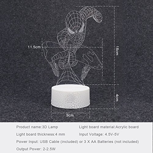 - Spiderman 3d lamp is great gifted for the following: office gifts, christian gift, christening gift, family gifts, gardening gifts,christmas gifts, baptism gift, baby gift, holiday gift, Thank you gifts, Thanksgiving gift, sympathy gift and all seasonal gift. It is perfect animal lover gifts. LAST MINUTE GIFT IDEA FOR HER or ROMANTIC BIRTHDAY GIFT for Mom or MOTHERS DAY.