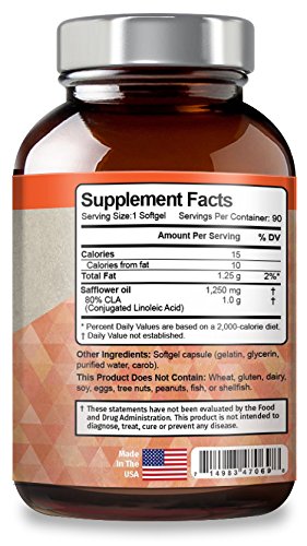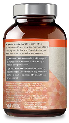 -. Feature : A BETTER WAY TO CONTROL YOUR WEIGHT: Introducing Vitamin Bounty CLA-1250 - the natural way to enhance your weight-loss goals / WHAT IS CLA?: CLA (Conjugated Linoleic Acid) is a Naturally Occuring Fatty Acid Found in Meats, Dairy, and Some Plants. The Maximum Strength CLA in Eukonic Supplements are Made from Pure Safflower Oil, Offering you the Highest Quality Natural Choice. Each 1250mg Softgel is Standardized to 80% CLA, for 1000mg of Active CLA. / NATURAL: Vitamin Bounty CLA-1250 is non-stimulating, which makes it the preferred alternative to other weight management products. Made in the USA, it is guaranteed to be non-GMO and gluten-free. / OPTOMIZED: Well-respected clinical trials have shown that in combination with a proper diet and exercise, CLA may help reduce body fat*. While we make no claim that you will lose weight while taking CLA, we stand by its unique properties and purity, and believe it will aide any properly-devised weight management program. / WORRY-FREE: Vitamin Bounty stands behind every product we sell, and we'll ensure you are completed satisfied with the product.
