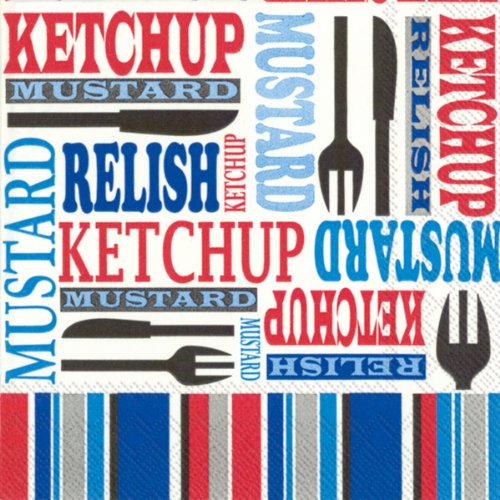 - Patriotic Picnic Star Condiments design patterns words in red and blue against a white background