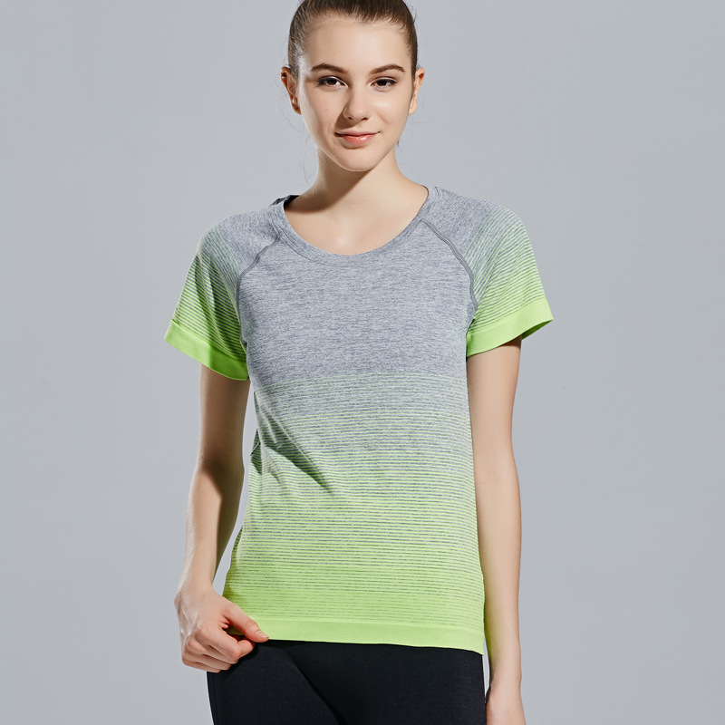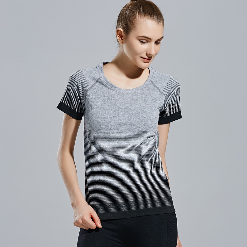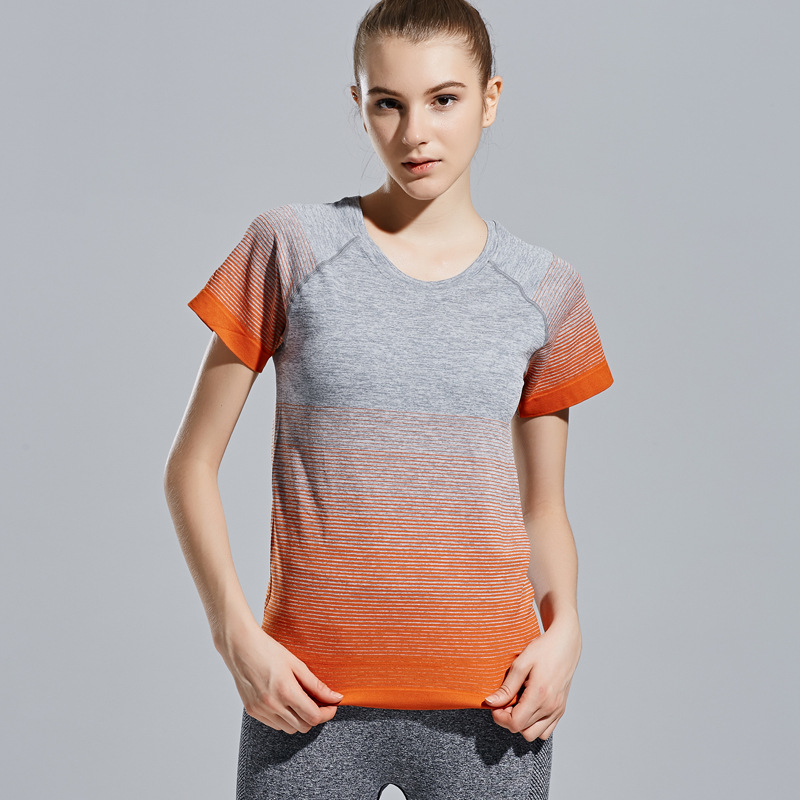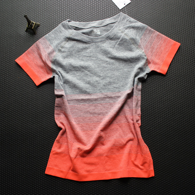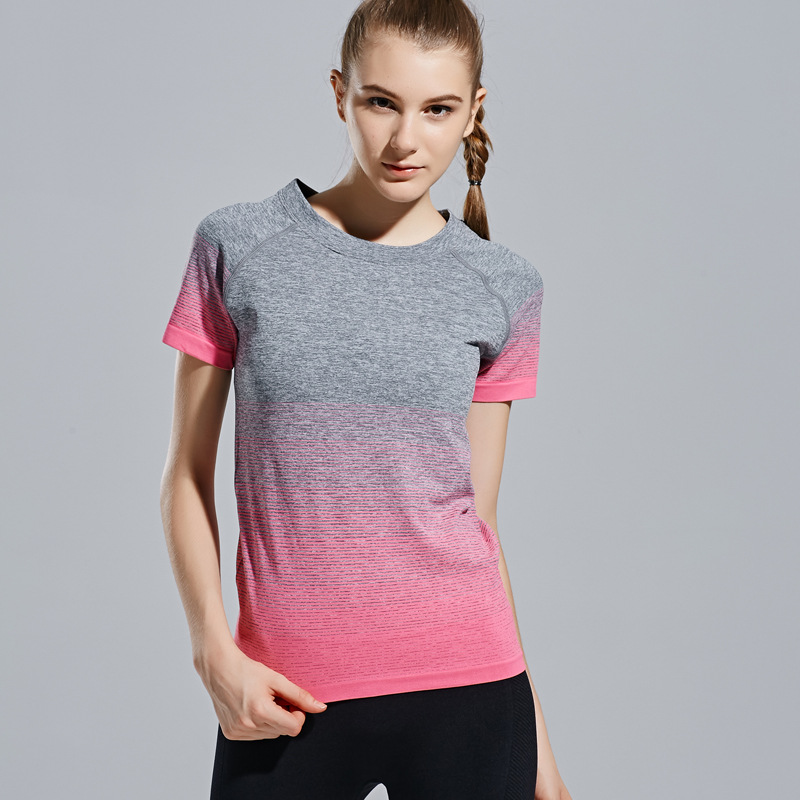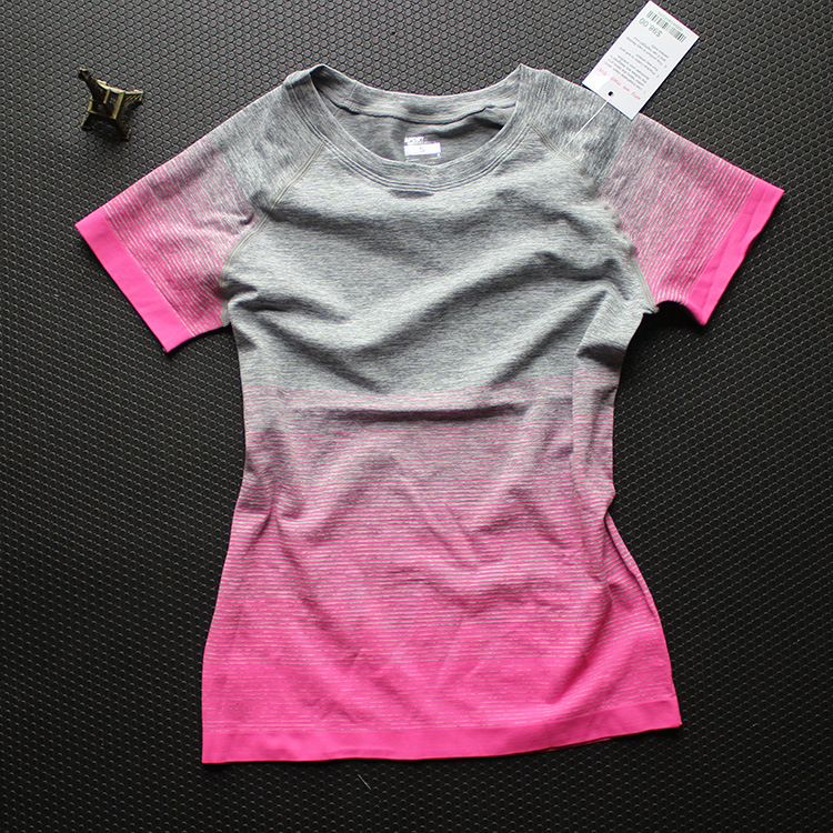 Fitness Women T-shirtsu0026nbsp;Yoga Clothes Sports Short Sleeve Outdoor Quick Dry Gradient Running Breathable Gym Tights Sportswear Tops