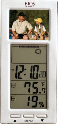 -. Brand : National Geographic -. Feature : Put your photo with home comfort conditions / 2.4" digital TFT LCD panel / Indoor temperature and relative humidity / Weather forecast -. ProductGroup : Lawn & Patio -. ProductTypeName : OUTDOOR_LIVING -. Title : National Geographic Digital Photo Frame Thermometer