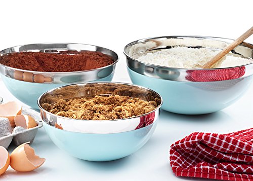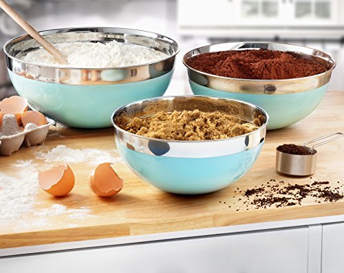Francois et Mimi Stainless Steel Mixing Bowls, 3 Piece Set, with Azure Blue Accent