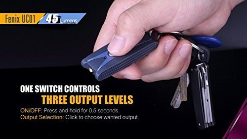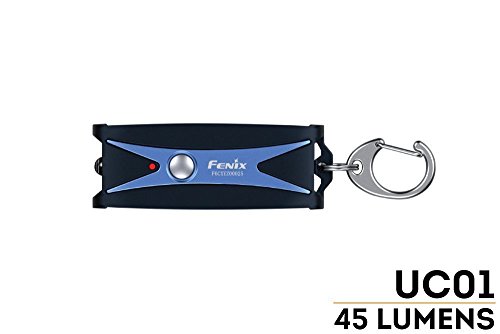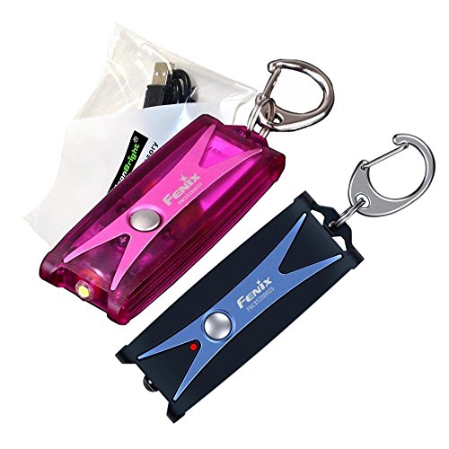 2 color pack Fenix UC01 45 lumen USB rechargeable LED keychain lights (One each Blue & purple) with EdisonBright brand USB charging cable