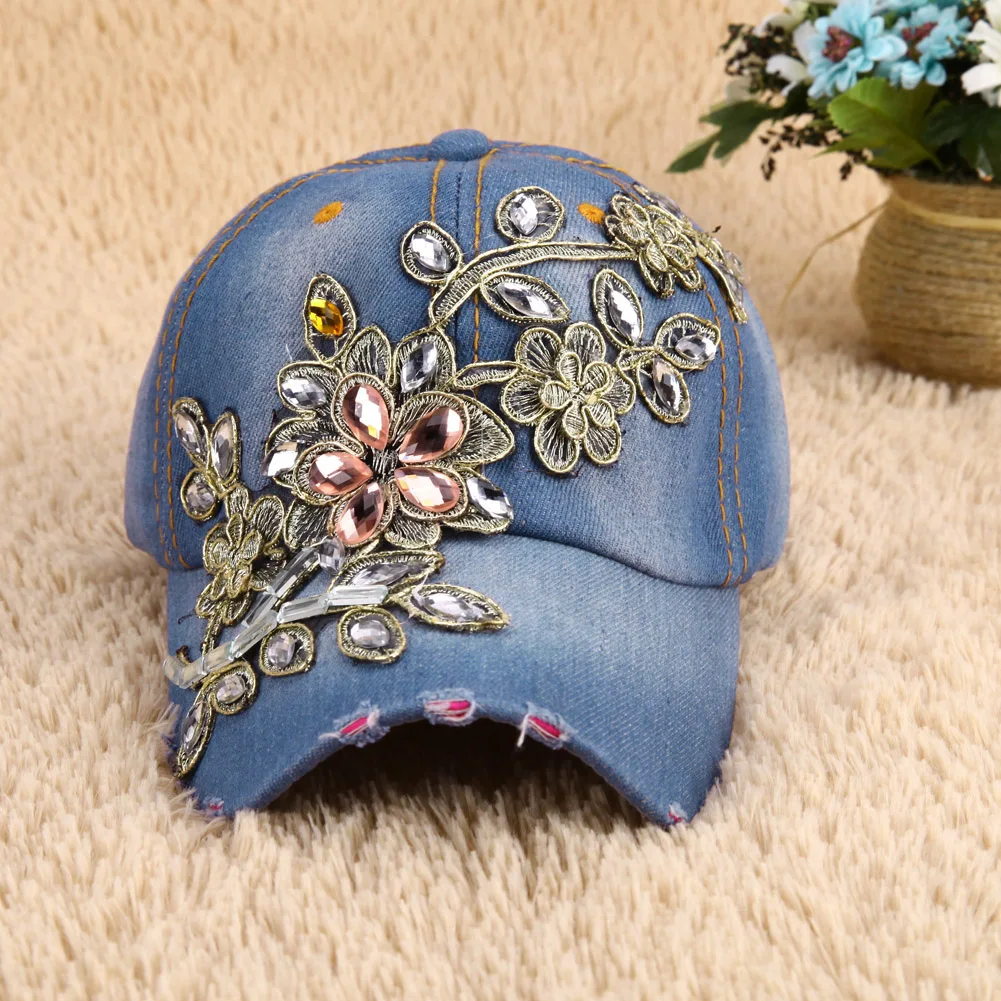 Model Number:Jeans Baseball Cap Hat With Rhinestones