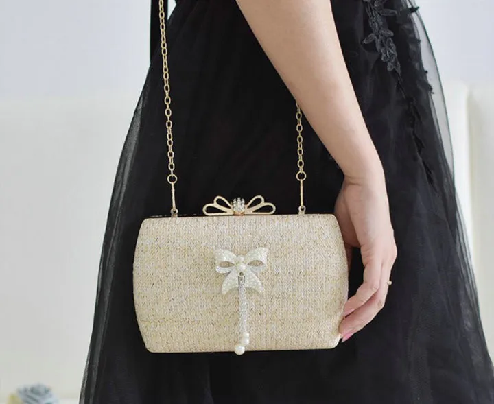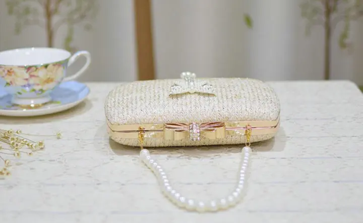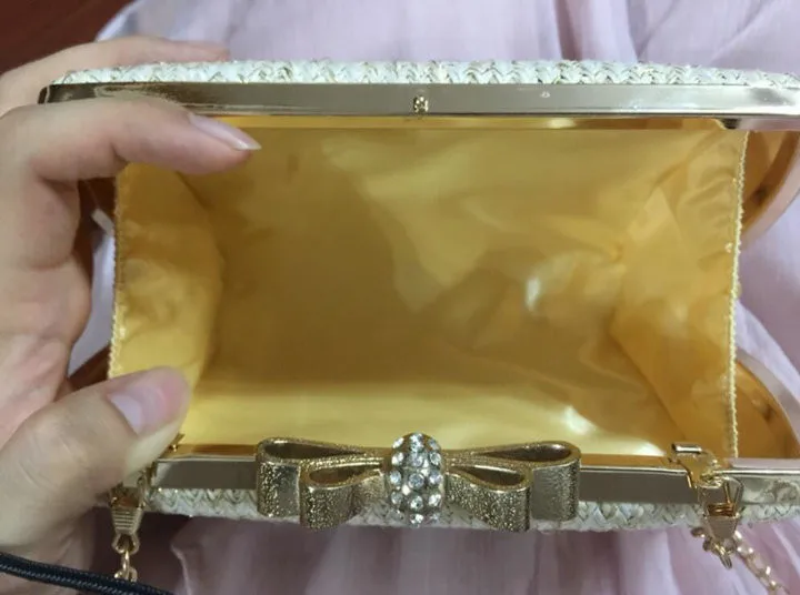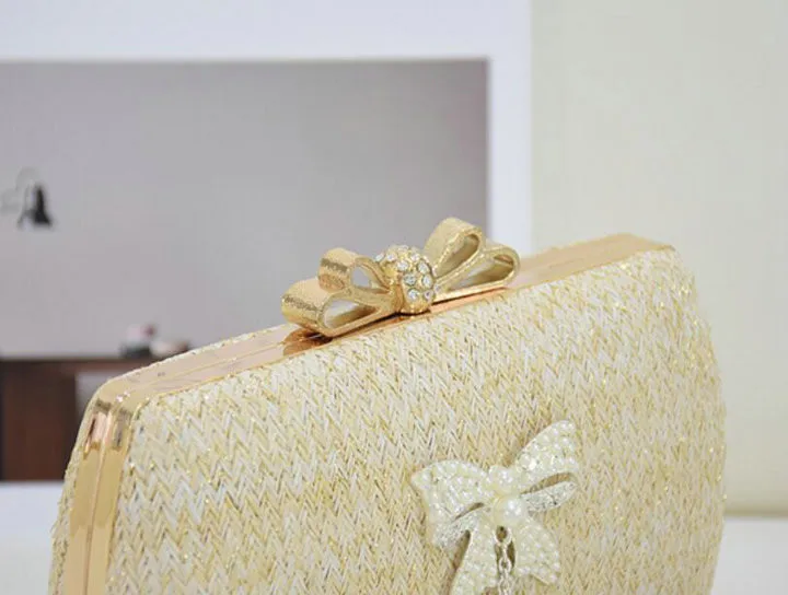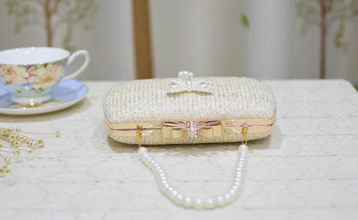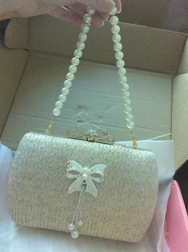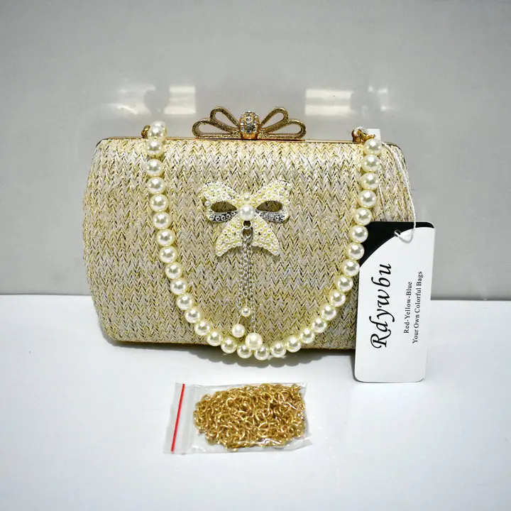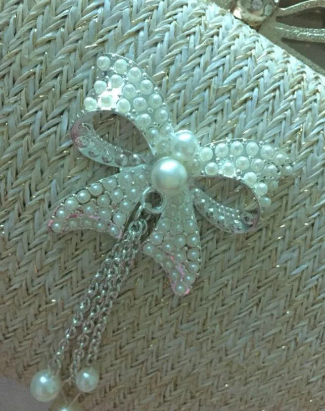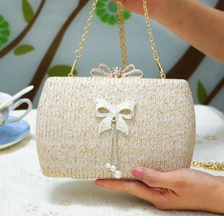 Material:Chains Straw bowknot pearl dinner bag clutches purse handbag