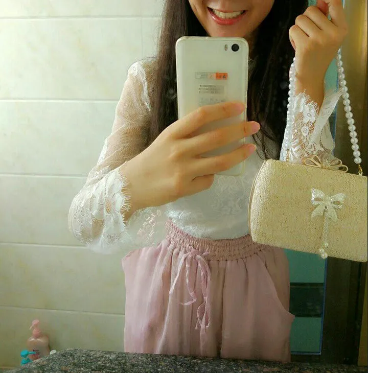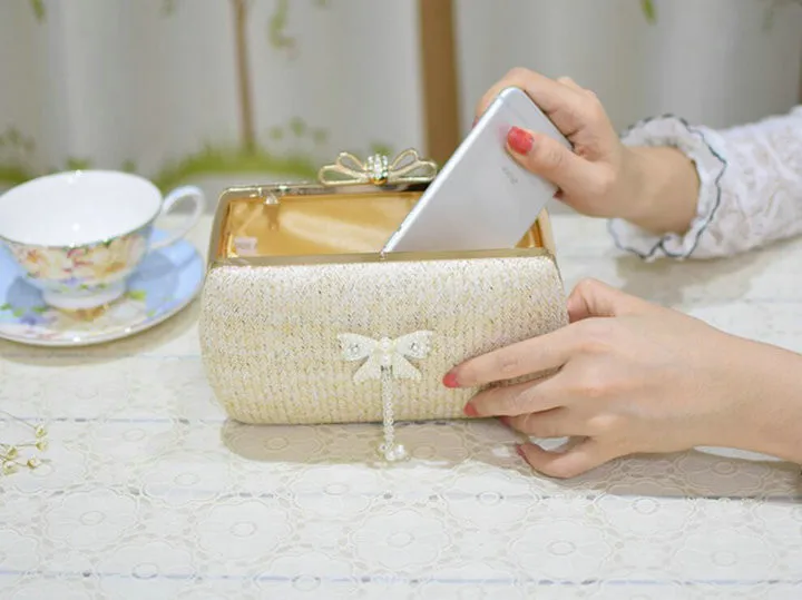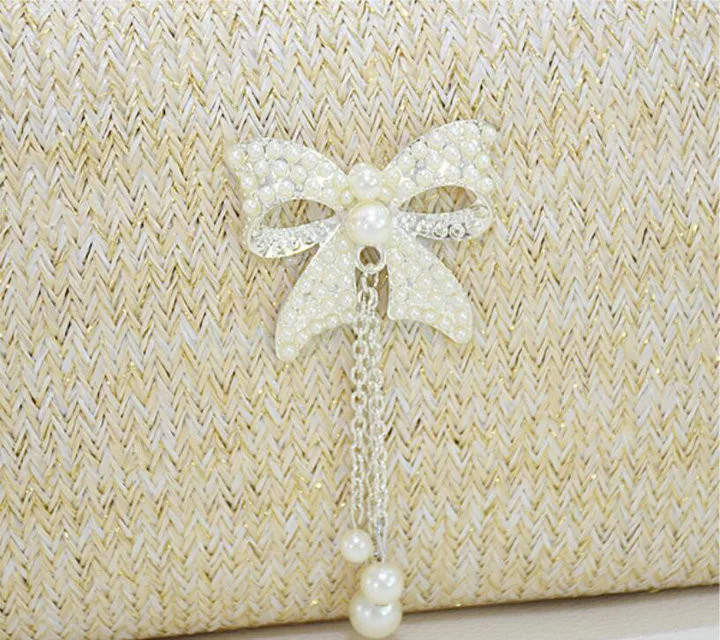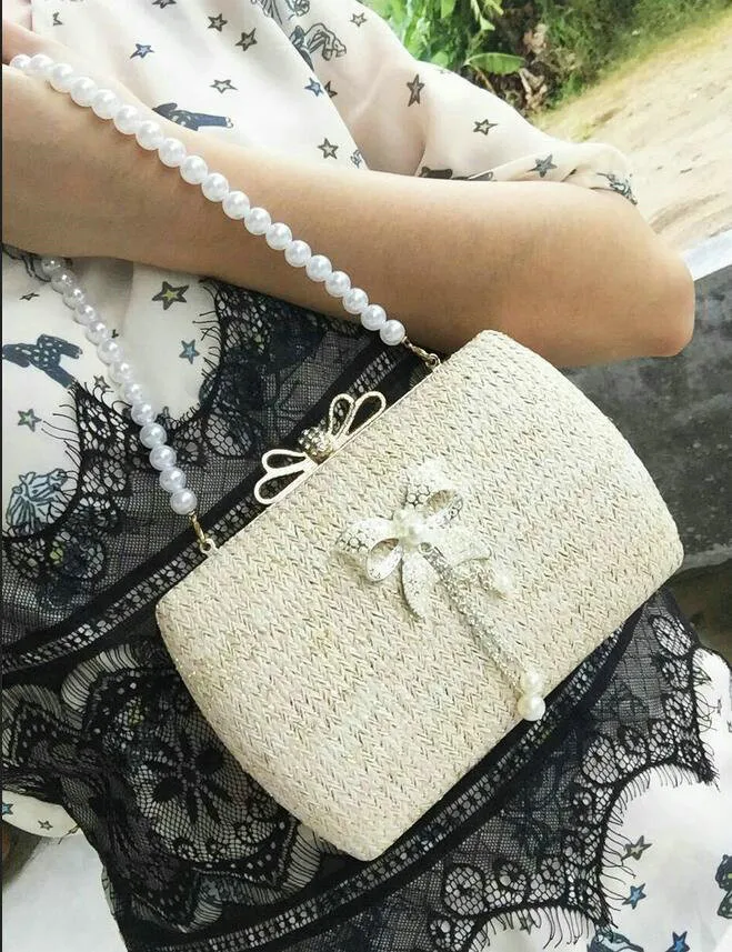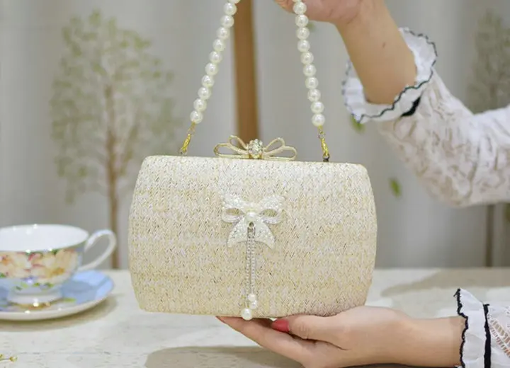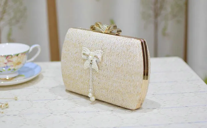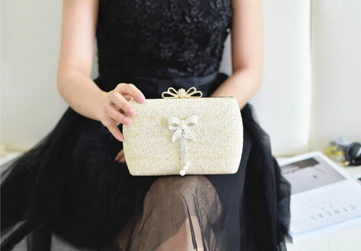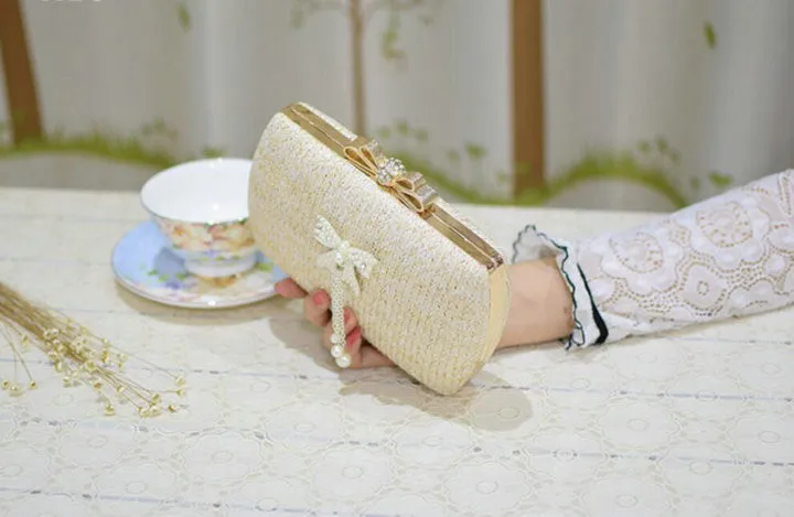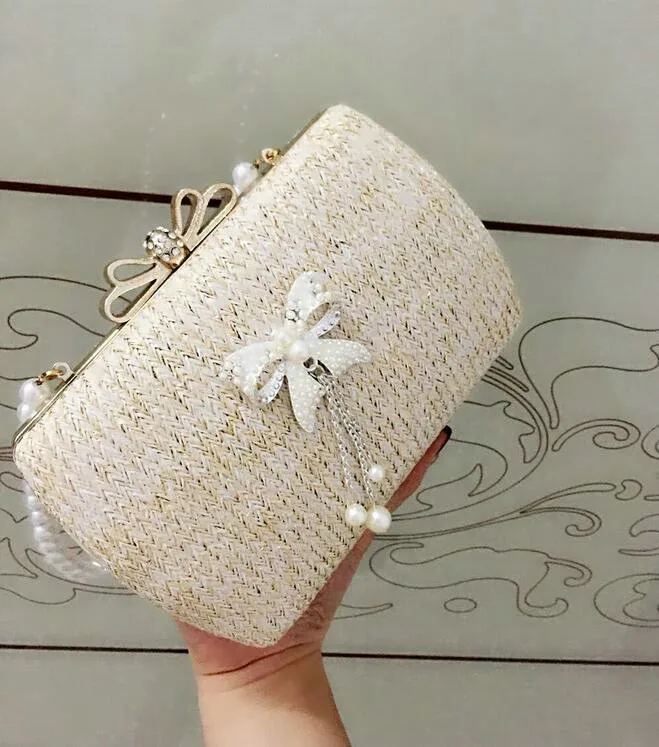Material:Chains Straw bowknot pearl dinner bag clutches purse handbag