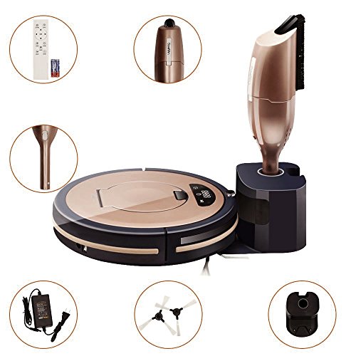 Package contents:robot vacuum x1,Hand cleanerx1,User manual x1,remote control x1,extra hepa filter x1,extra sides brush x1,cleaning brush x1,AC adapter x1, Charging dock x1,mop cloth x1.