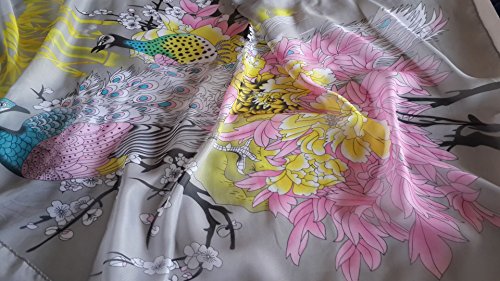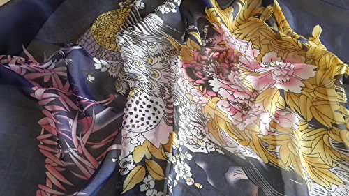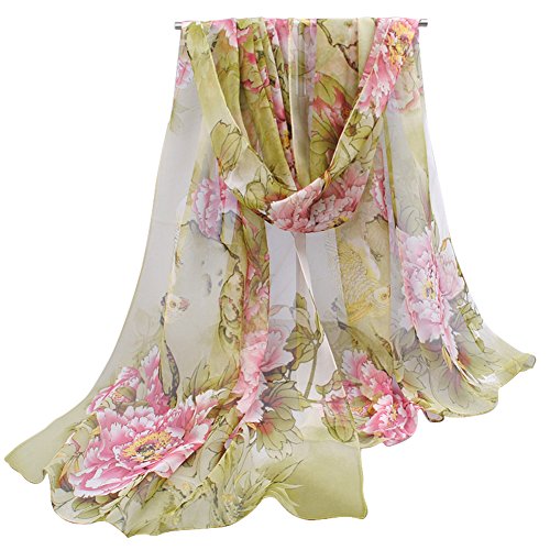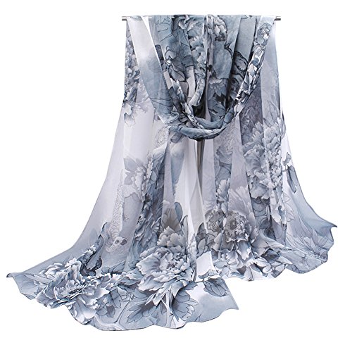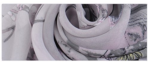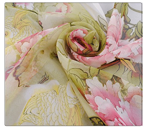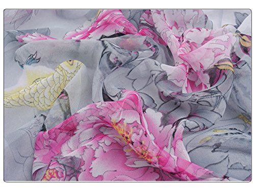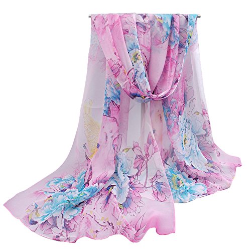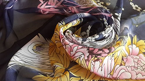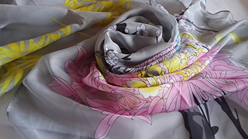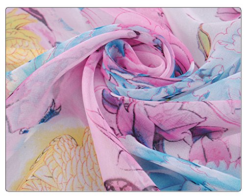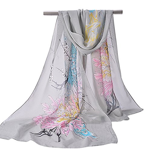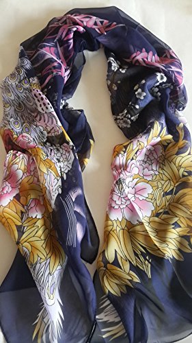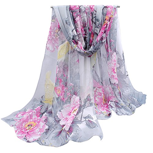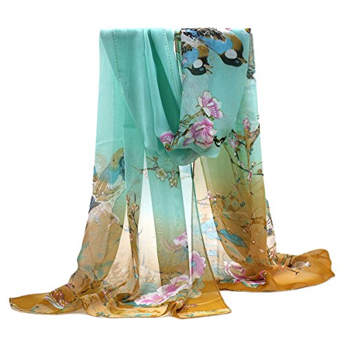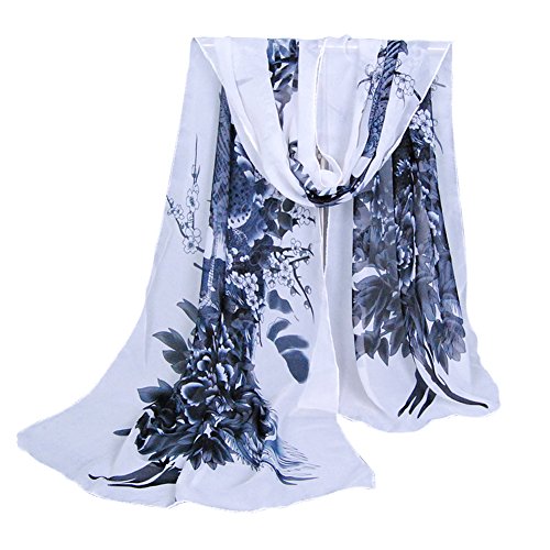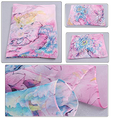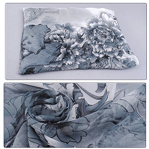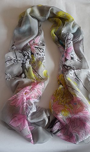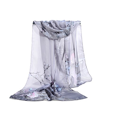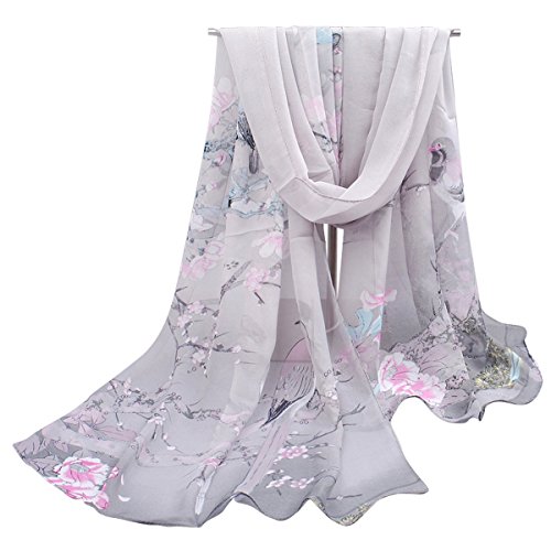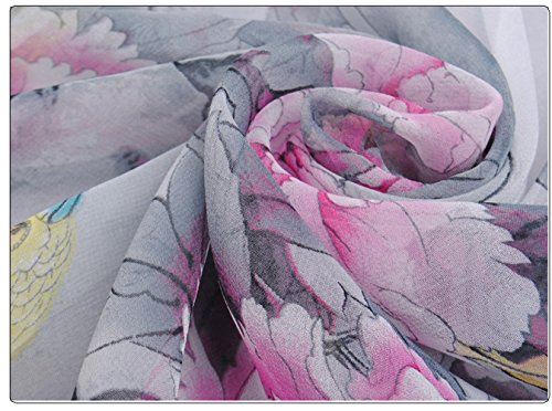 | Herebuy - Unique Women's Floral Scarves: Chiffon Flowers Birds Printed Scarf |