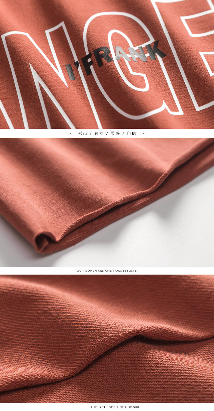 | Renee | 167 | 56 | 87/69/94 | L | 面料质感不错,字母的添加显得卫衣有细节 |