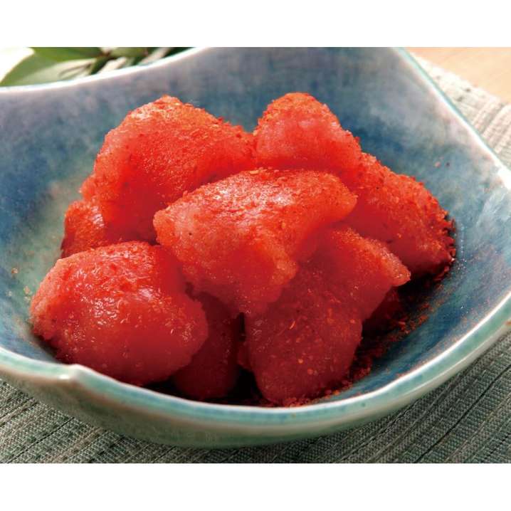 ●別添の「熟成旨だれ」をお好みで明太子にかけてお召し上がりください。より濃厚で旨味のある味がお楽しみ頂けます。