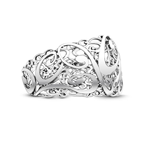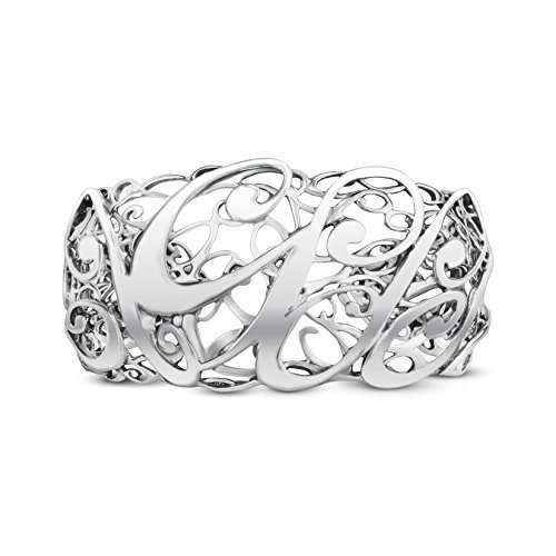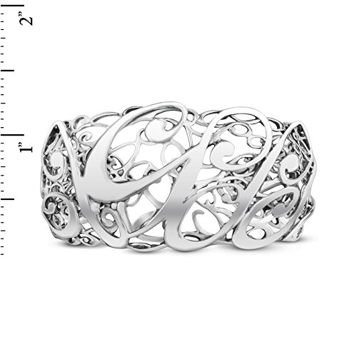 -. Feature : .925 Sterling Silver / Bracelet measures approximately 1-1/4" wide at front center / See Ruler View for accurate sizing. Silver may tarnish over time. / Handcrafted in America with lifetime warranty on all jewelry / An intricate sterling silver filigree design showcases a swirling cursive "CP" for a signature look.