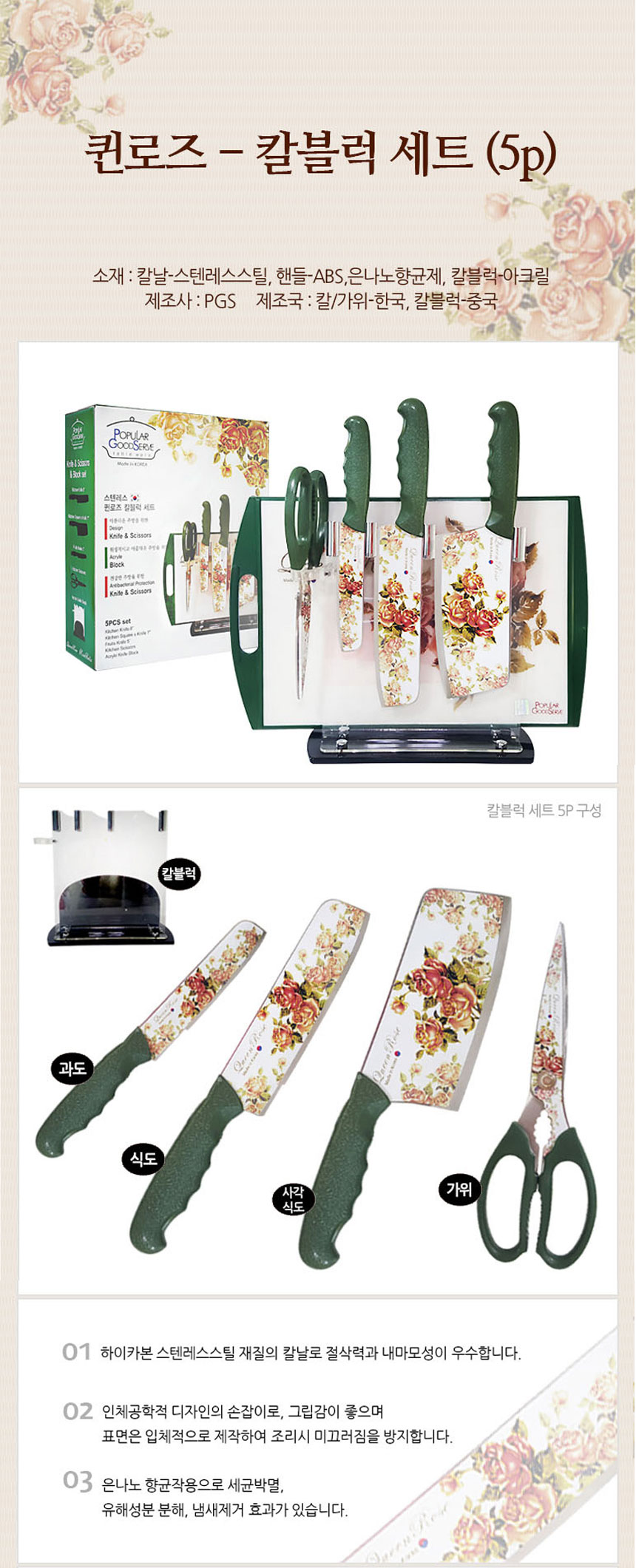 Kitchen utensils Knife block set 5p Transitional esophagus Square queen rose