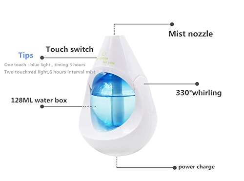 - A timing function:(3/6 hours timing working), prevent the humidifier working when dry. blue indicator light and 3 hours continuous humidification; red indicator light and 6 hours continuous humidification, spray 5 seconds off 5 seconds.