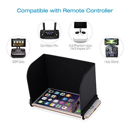 Powerextra Smartphone Monitor Sunshade Hood for DJI Spark, Mavic Pro, Phantom 3/4, 3DR Solo Transmitters, Osmo Handheld Gimbal Stabilizer, for iphone 7plus/6splus, Galaxy Note 5/7, Samsung S7edge