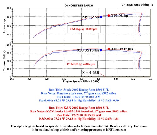K&N Performance Air Intake Kit 63-1561 with Lifetime Red Oiled Filter for 2009 Dodge Ram Pickup Truck 1500 2500 5.7L V8