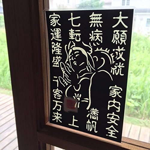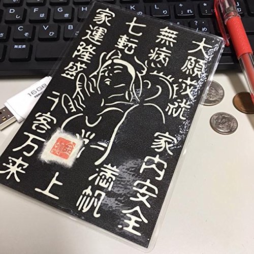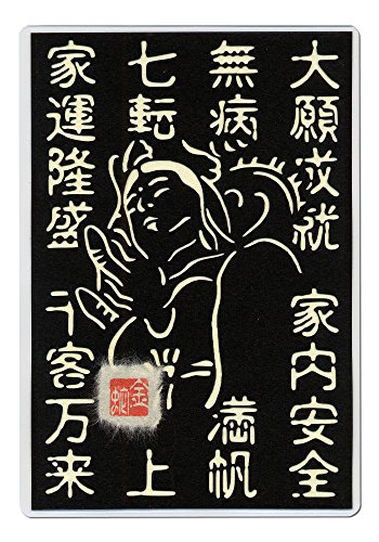 Cutout picture Japanese art collage KIRIE “Kanji characters that bring good fortune & White Snake Kannon” Made of Washi(Japanese paper) Basic color, 4” x 6”