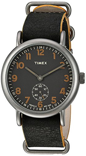 -. Title : Timex Men's TW2P86700 Weekender 40 Mini-Sweep Titanium-Tone/Black Leather Slip-Thru Strap Watch