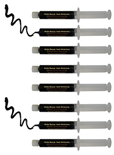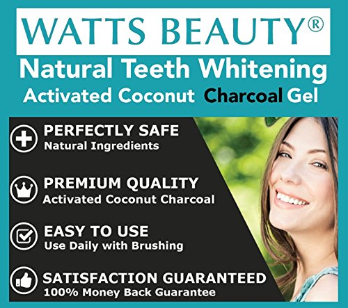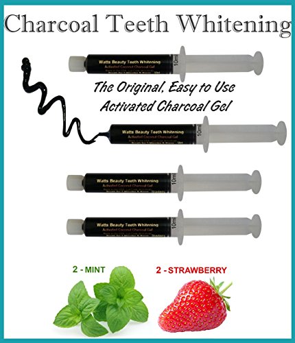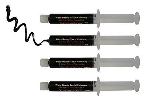 This new technology activated coconut charcoal teeth whitening powder, brightening gel offers the exact same benefits of loose charcoal teeth whitening powder minus the mess. A Watts Beauty proprietary formula is made up of activated coconut charcoal and vegetable glycerin derived from coconut oil allowing the activated coconut charcoal to work as intended. Charcoal gently brightens your smile over time. Most see results in 1 or 2 uses but results will vary per individual. Keeping fingers and brushes out of containers, this Watts Beauty charcoal gel stays fresh in each capped syringe and has a shelf life of up 2 years, even longer if stored in fridge allowing for touch ups all year round. No wet brushes in jars or messy powder containers. Simply dispense a line of gel onto your toothbrush, brush for 2 minutes and rinse well. Can be used along with your toothpaste or by itself for faster results. Up to 20 applications in each large 10ml, easy dispense tip syringe. Available in mint and strawberry.Feature