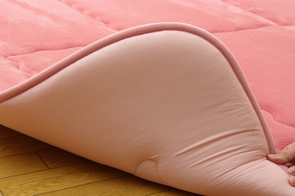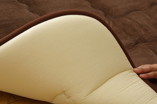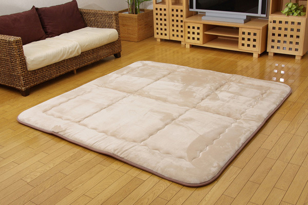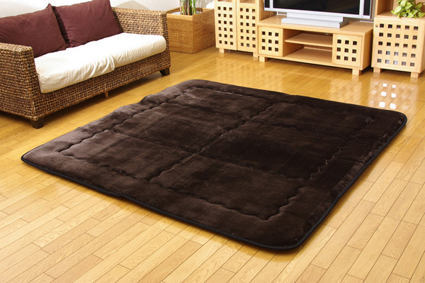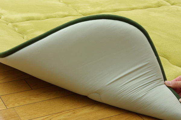 軽くて非常にやわらかい肌感触が特徴のフランネル生地を使用しています。中材にはクッション性にこだわった国産の固綿40mmを使用しています。十分な弾力性があるのでフローリングでのご使用にも最適です。遮音特級LL-30を取得しています。床下への騒音も軽減します。また、こたつと併用するとこたつの熱を床下へ逃しにくくなるので省エネ効果もあります。