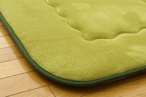 【商品名】 国産(日本製)固綿40mm使用 フランネル生地 ふっくら敷 『スムースF敷』 グリーン 190×190cm 正方形 【ジャンル・特徴】 軽くてとっても柔らかい!ふっくらカーペット(遮音特級LL-30) ■サイズ・色違い・関連商品■約190×190cm ダークブラウン■約190×190cm グリーン[当ページ]■約190×190cm パープル■約190×190cm ローズ■約190×190cm ベージュ■約190×190cm ブラウン■約190×240cm ローズ■約190×240cm ベージュ■約190×240cm ブラウン■約190×240cm ダークブラウン■約190×240cm グリーン■約190×240cm パープル関連商品の検索結果一覧はこちら 軽くて非常にやわらかい肌感触が特徴のフランネル生地を使用しています。中材にはクッション性にこだわった国産の固綿40mmを使用しています。十分な弾力性があるのでフローリングでのご使用にも最適です。遮音特級LL-30を取得しています。床下への騒音も軽減します。また、こたつと併用するとこたつの熱を床下へ逃しにくくなるので省エネ