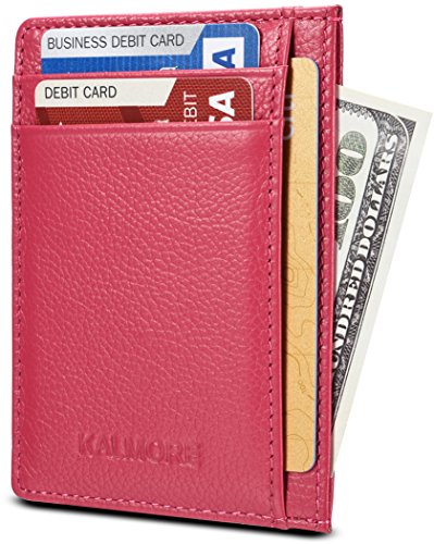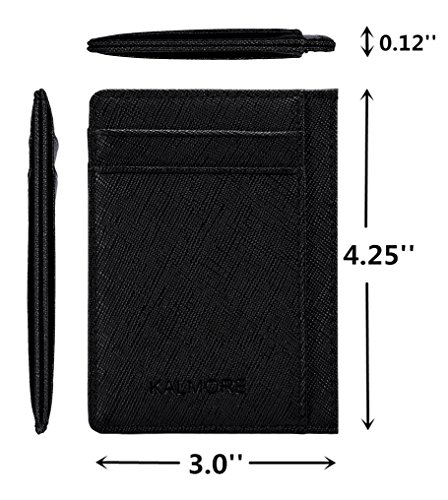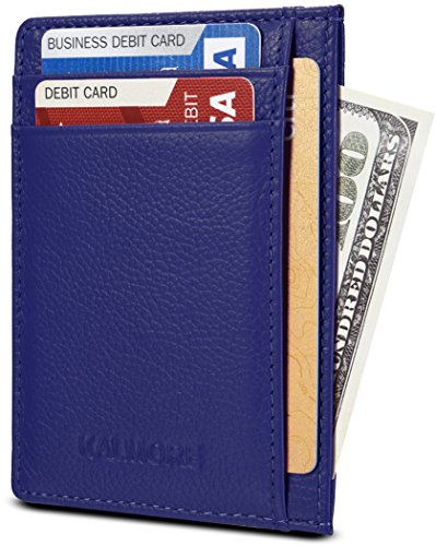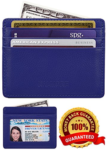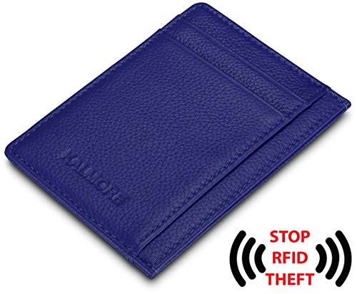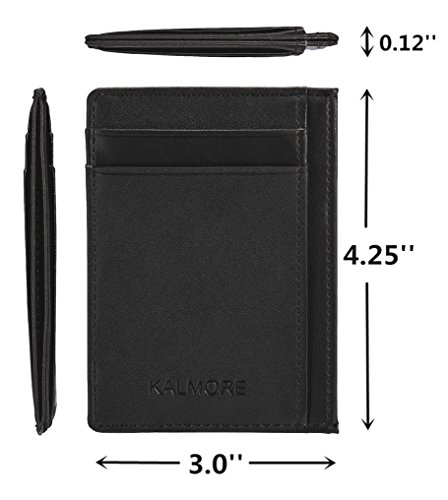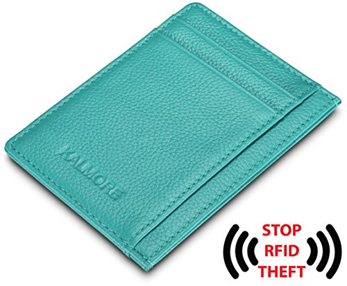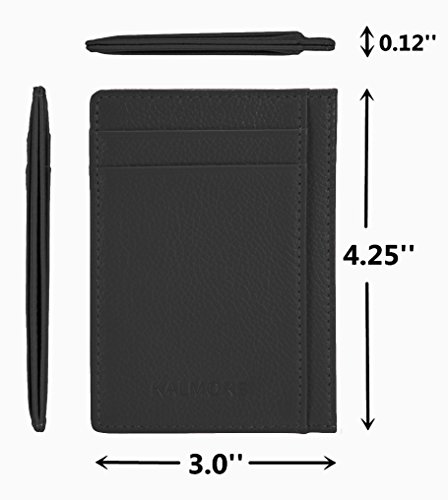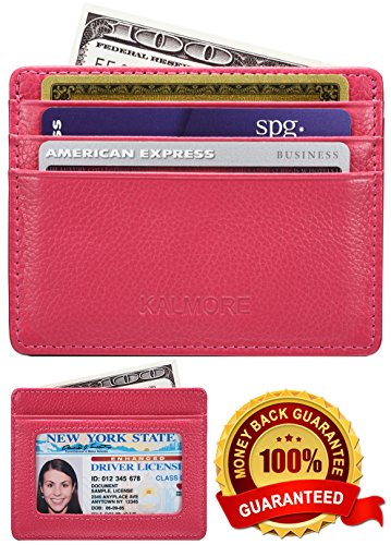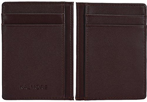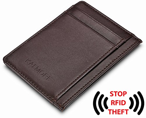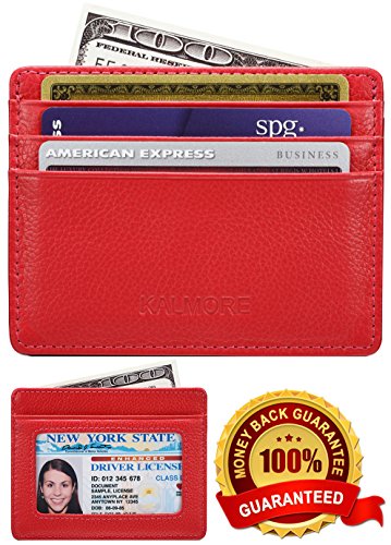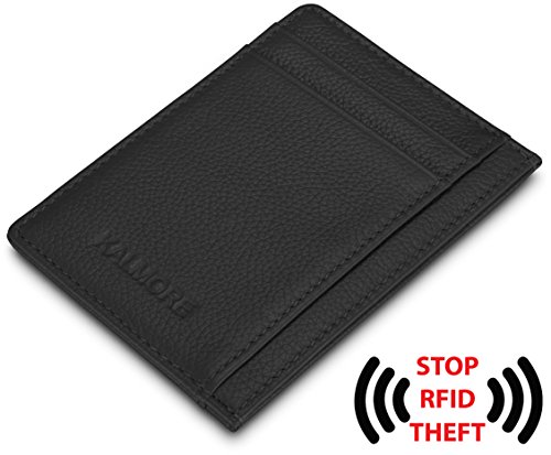 PROTECT YOURSELF from IDENTITY THEFT! KALMORE card cases / money clip / minimalist wallets are equipped with advanced RFID Secure technology by using unique military-grade proprietary blocking material and made of 100% premium quality genuine leather (soft, durable, and breathable) from heritage of craftsmanship. The wallet has 5-7 card slots and convenient quick access to all cards with slim and stylish design, which make it convenient and suitable for daily life! RFID chip is pre-installed to block RFID readers from scanning your credit cards, debit cards, banking information, smartcards, RFID driver's licenses and other RFID cards. PROTECT YOURSELF, SECURE YOUR IDENTITY AND YOUR CARDS FROM TODAY! FEATURES AND BENEFITS: - 100% premium quality genuine leather hand-crafted by the finest workmanship