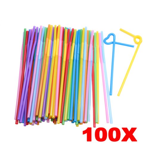-. Title : Vktech Flexible Mixed Color Disposable Drinking Straws-100 Count