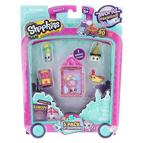 -. Feature : Collect all of the super-cute season 8 shopkins characters and you might be lucky enough to find some rare characters too! / First stop in the shopkins world vacation: europe! Collect shopkins from teams like german jet set, italian tour, spanish stopover and uk holiday in this 5-pack of shopkins. / Comes with a "hotel room" that you can connect together and build the ultimate european city for you to display your shopkins! / Comes with 1 single room and 1 collector's guide! / Includes rare lars lederhosen (8-061) & rare ella tower cake (8-012)!