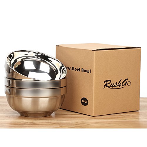 RushGo Stainless Steel Bowls Brushed Double-walled Insulated Set of 5