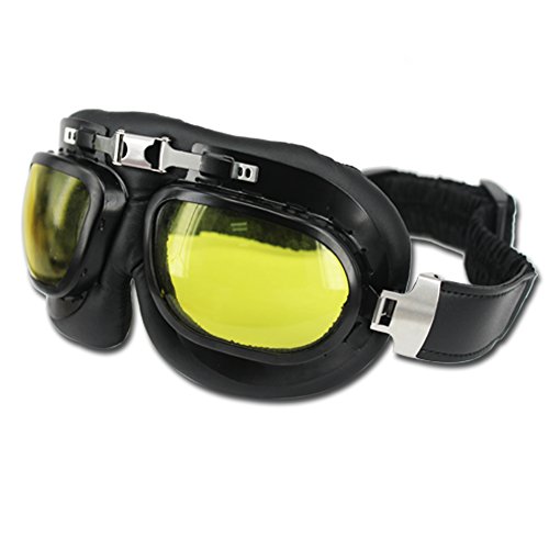 -. Title : HAMIST Vintage Goggles Aviator Motorcycle Glasses WWII RAF Pilot Goggles - Half Helmet Campatible,Soft Padded,Large Sized,Universal Fit, Yellow Lenses (Enhanced Tinted Lenses & Black Metal Frame)