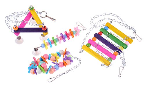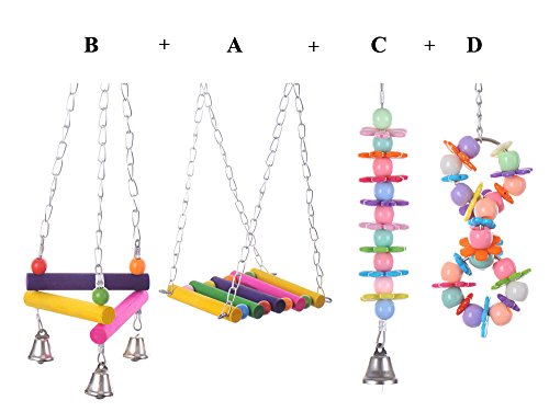 This great toy is made of vegetable dyed perches and pony beads in gorgeous bright colours. An ideal place designed for your little friends to play and climb, easy install in the cage.Give your pet a treat and have hours of fun watching them play. 100% Brand new and high quality; Material: Wood; Color: Colorful; Perfect size for Parrotlets, Parakeets, Cockatiels and Lovebirds; This toy would suit small medium varieties of birds parrots, Budgie, Peach Faced Lovebirds etc. Size: design A: Wood Diameter:1.4cm; Wood Length:10cm; Total Product Size:10*13cm; Swing Total Length:30cm design B: Wood Diameter:1.4cm; Wood Length:10cm; Total Product Size:10cm*20 design C: Length:15cm design D: 4.5cm*15cm(WxL) Note: It is manual measurement in Asian size which is smaller than US/AU/UK size,so please make sure of these actual measurements will fit your pet,thanks! Package Includes: 4 x Pet Bird Parrot Parakeet Budgie Cockatiel Cage Hammock Swing Toy Hanging Toy(design A B C D) Attention:All products uploaded by Yunt are exclusively sold,and distributed by Yunt,Yunt has its own brand, UPC, manufacturer, edition, binding, quantity and packaging 0 |