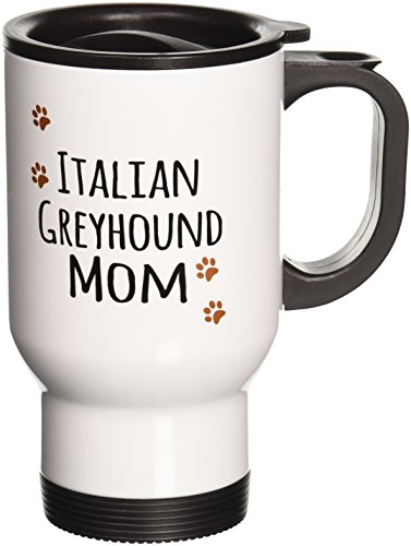 3drose Italian Greyhound Dog Mom Doggie by Breed Brown Paw Prints, Stainless Steel Travel Mug, 14-Oz