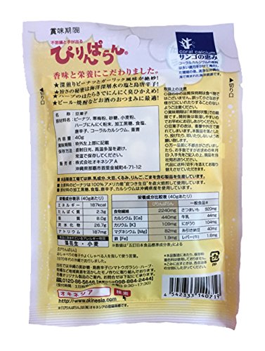 原材料:ピーナッツ、寒梅粉、砂糖、加工黒糖、小麦粉、ハーブにんにく粉末、コーラルカルシウム、重曹