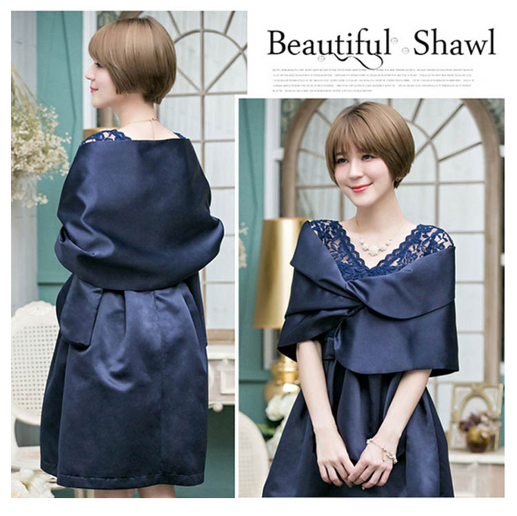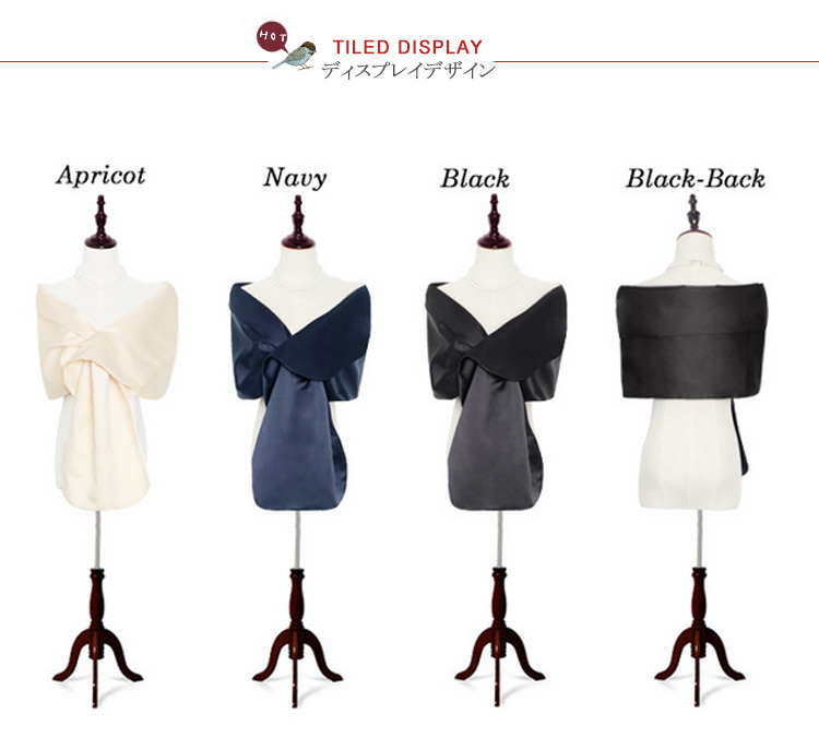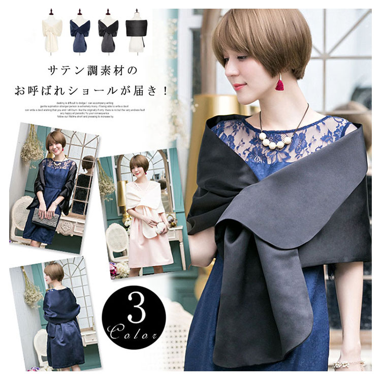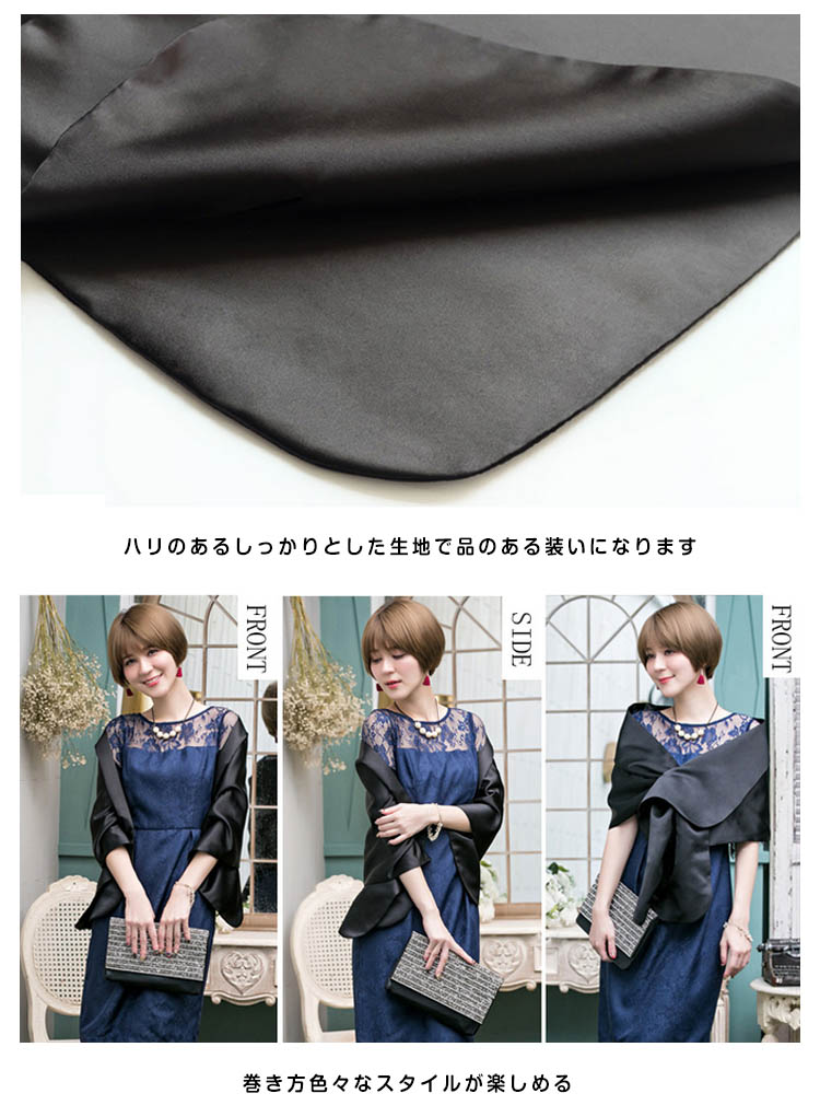 | サテン調素材のお呼ばれショールが届き!ハリのあるしっかりとした生地で品があるシルエットを作り出してくれます。広げで大判で気になる二の腕を隠すこともできます。生地感や巻き方でいろいろなスタイルが楽しめます。エレガントに決めたい時にぜひおすすめです。 | |