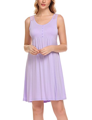 -. Title : Ekouaer Nightgown Women’s Henley Sleeveless Sleep Shirt Button Down Nightshirt Sleepwear For Breastfeeding S-XXL