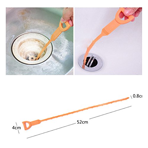 -. Feature : ★ DURABLE AND FIEXIBLE :reach deep P-trap of drains and pipes without causing any damage,Ideal for kitchen, bathroom & utility sinks, bathtubs and showers Drains Cleaning. / ★EASY TO USE: simply insert into your drain and strainers as it grabs obstructions at P-trap or hook the hair, pull out and wipe off, and repeat if necessary or throw away as one time use. / ★QUICK AND EASY DRAIN UNCLOG - This 20" flexible wand has dozens of burrs that grab and remove hair, food, garbage, and other obstructions easily. They can help you effortlessly remove clogged hair or grime from your drain in seconds. / ★SAVE YOUR MONEY You will no longer need expensive professional plumber services with this simple in use and affordable drain cleaning tool / ★REUSABLE Can be used over and over until visible damages occur. Simply remove all the obstructions and rinse in water. But our special P.R.Ice affords you to keep hands clean and simply get rid of the tool after cleaning