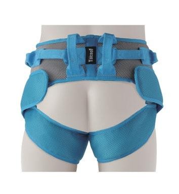 | 脚と腰の3点にベルトを装着するため、持ち上げる際、体重が分散され、また腰のみの固定より、ずり上がりにくくなります。持ち手は身体を囲って配置しています。介助時に力を入れやすく、足・腰の負担を軽減。座ったままでも足腰に簡単に着脱でき、スムーズに介助が行えます。足部ベルトは、外側から内側へ足にしっかり巻きつけ、腰部で固定するため、固定感が増します。幅広の面ファスナーとバックルでしっかり装着できます。 |