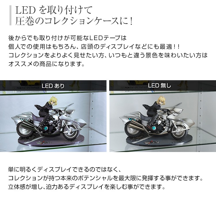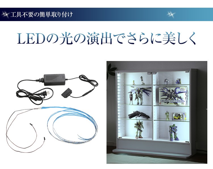 コレクションラック【-Luke-ルーク】ロータイプ専用LED(ロータイプ用/深型・浅型共通)・LEDを取り付けて圧巻のコレクションラックに!・コレクションの見栄えが格段によくなります。・コードが邪魔にならない専用設計!・工具は不要の簡単取り付け!【商品名】コレクションラック【-Luke-ルーク】ロータイプ専用LED