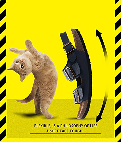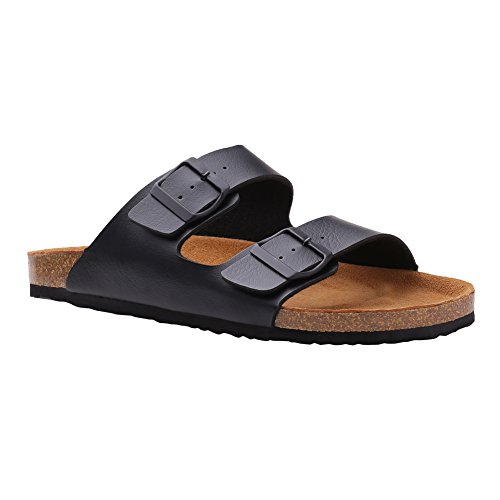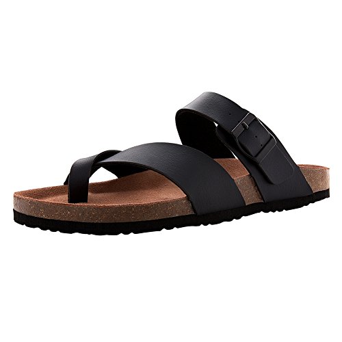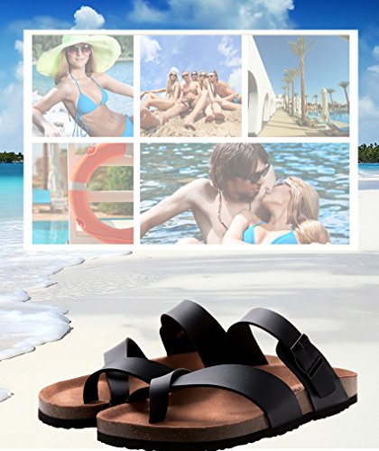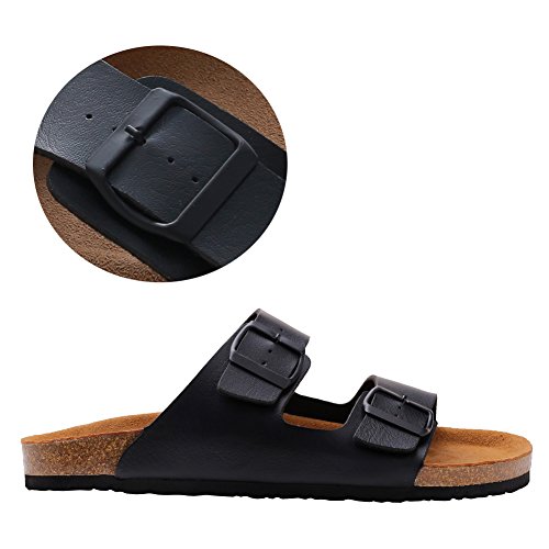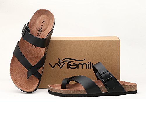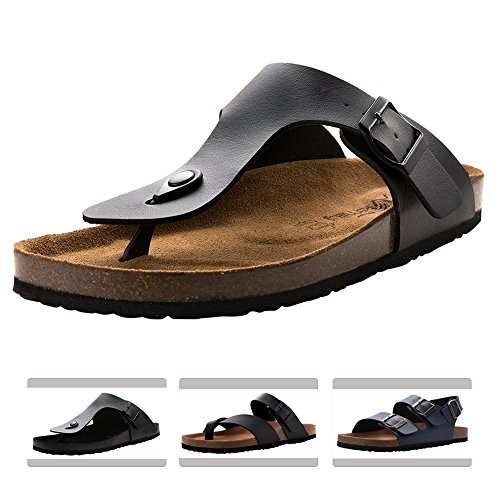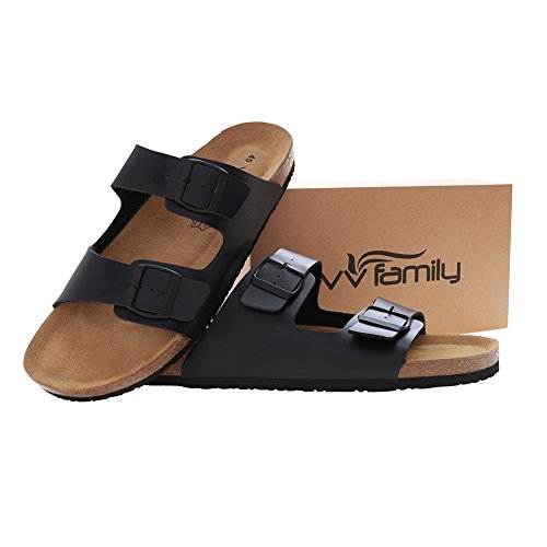 Men's Black Sandals Cork Sole with Adjustable Buckle by VVFamily (EU 41, Black)